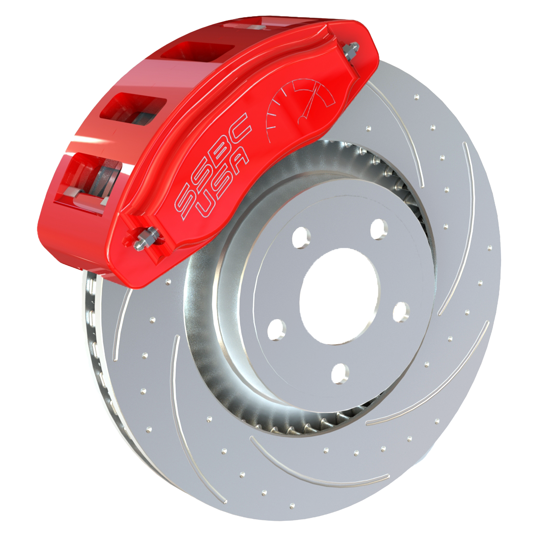 The 6-piston aluminum calipers are a direct replacement for factory 2/4-piston front calipers. The SSBC-USA kit includes high-performance severe-duty brake pads, all necessary hardware and full instructions. Standard colors are clear anodized, red, and black, with optional custom powder coat colors available.